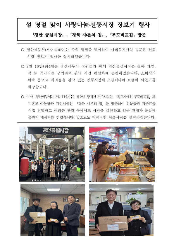 설맞이 이웃돕기 위문행사·전통시장 장보기