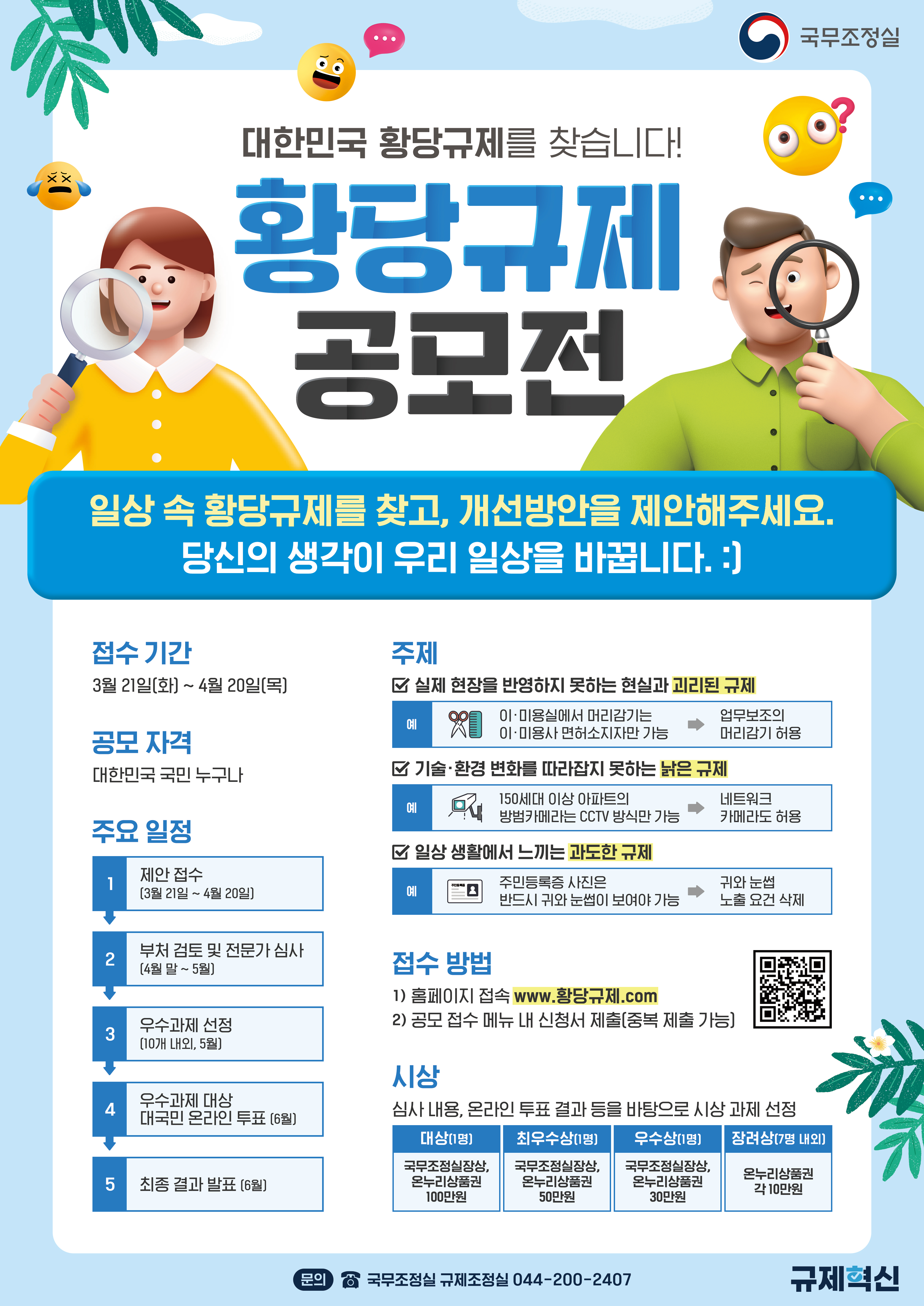 일상 속 황당규제를 찾고, 개선방안을 제안해주세요! 당신의 생각이 우리 일상을 바꿉니다.