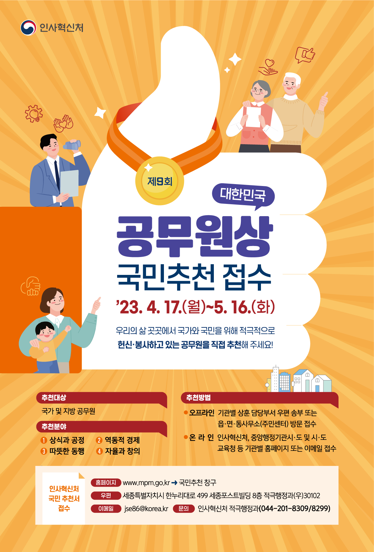 제9회 대한민국 공무원상 국민추천 접수 ’23. 4. 17.(월)~5. 16.(화)