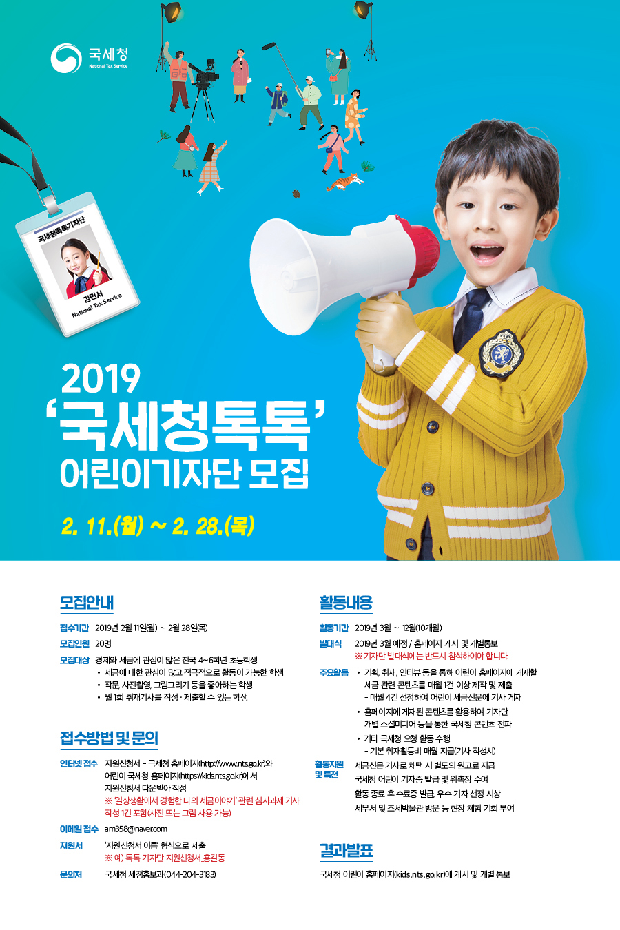 ○ 주요활동 ·기획, 취재, 인터뷰 등을 통해 어린이 홈페이지에 게재할 세금 관련 콘텐츠를 매월 1건 이상 제작 및 제출