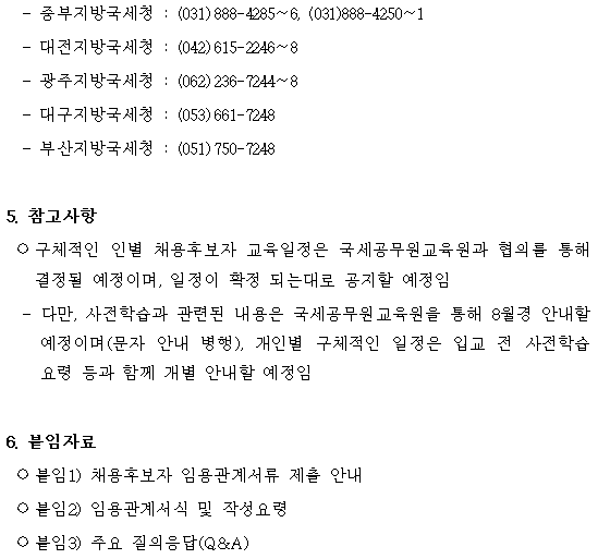 - 다만, 사전학습과 관련된 내용은 국세공무원교육원을 통해 8월경 안내할