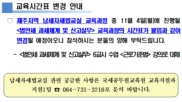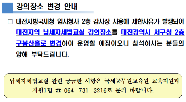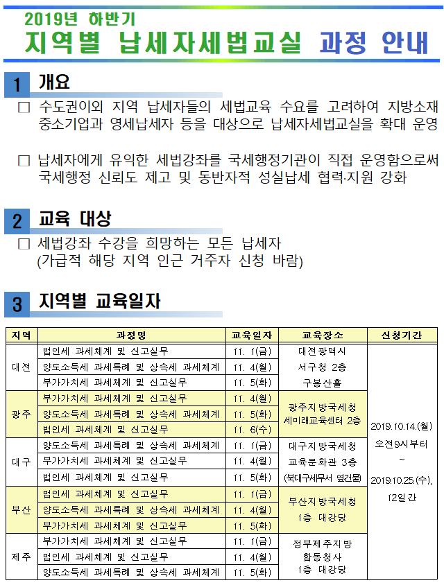 지역별 납세자세법교실 과정 안내