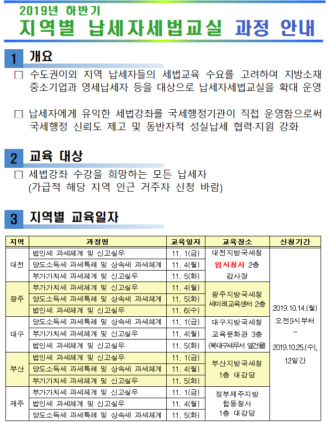 지역별 납세자세법교실 과정 안내