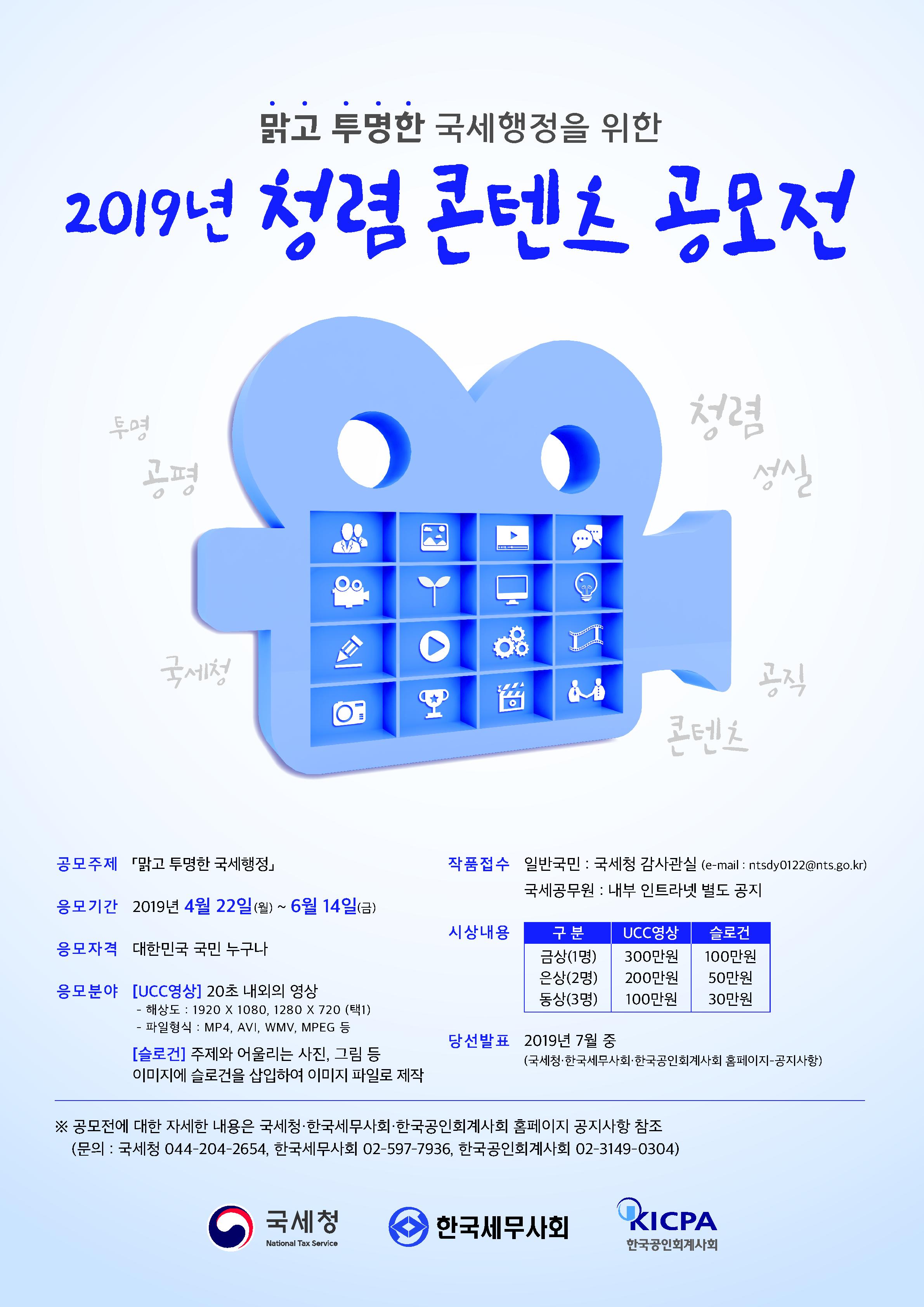 작품접수 일반국민 : 국세청 감사관실(e-mail : ntsdy0122@nts.go.kr)
