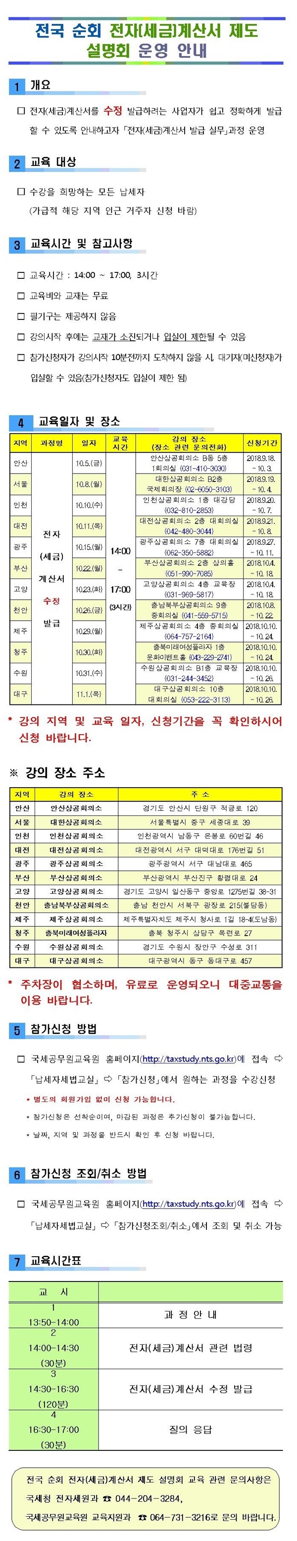 전국 순회 전자(세금)계산서 제도 설명회 교육 관련 문의사항은