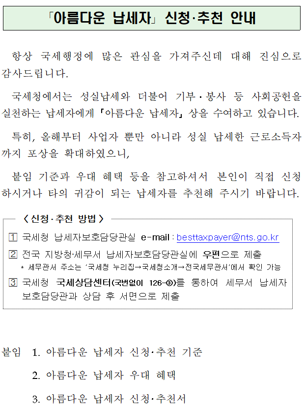 ??국세청 납세자보호담당관실 e-mail:besttaxpayer@nts.go.kr
